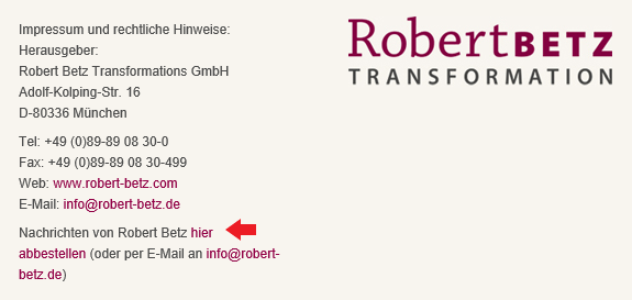 Am Ende von jedem Newsletter befindet sich ein Link mit der Beschriftung „hier abbestellen“. Damit kannst du dich aus unserem Newsletter austragen.